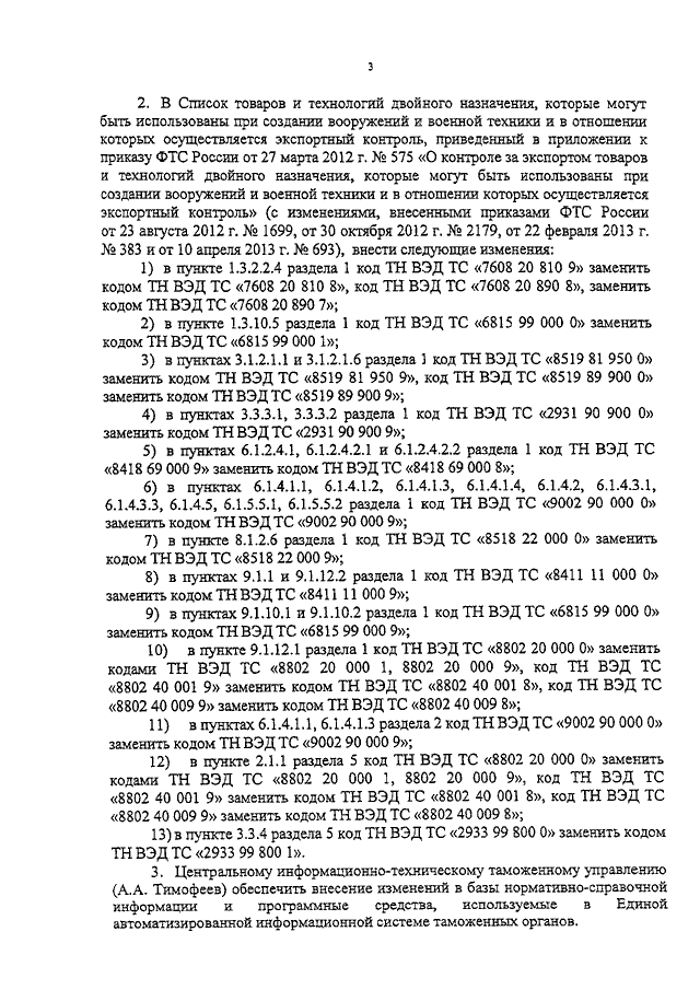 "О ВНЕСЕНИИ ИЗМЕНЕНИЙ В ПРИЛОЖЕНИЯ К ПРИКАЗУ ГТК РОССИИ ОТ 23 МАЯ 1996 Г. N 315 И В ПРИЛОЖЕНИЕ К ПРИКАЗУ ФТС РОССИИ ОТ 27 МАРТА 2012 Г. N 575"