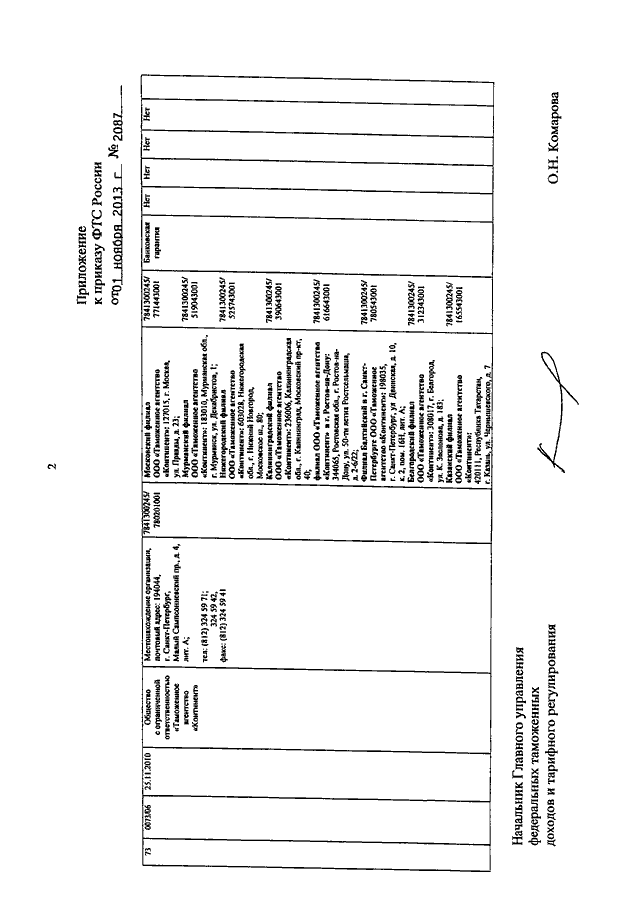 ПРИКАЗ ФТС РФ от 01.11.2013 N 2087