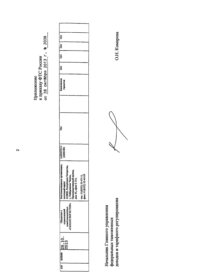 ПРИКАЗ ФТС РФ от 28.10.2013 N 2038