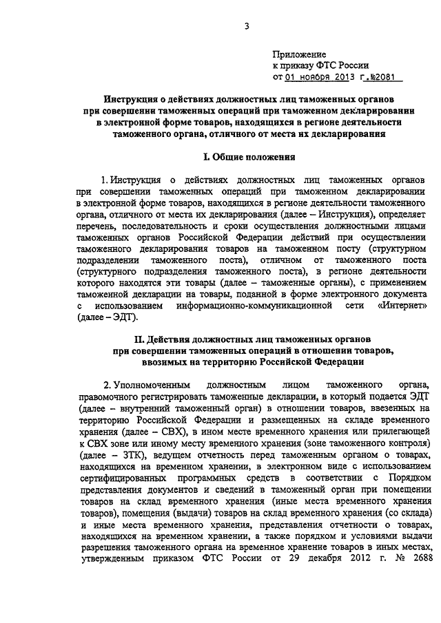 ПРИКАЗ ФТС РФ от 01.11.2013 N 2081