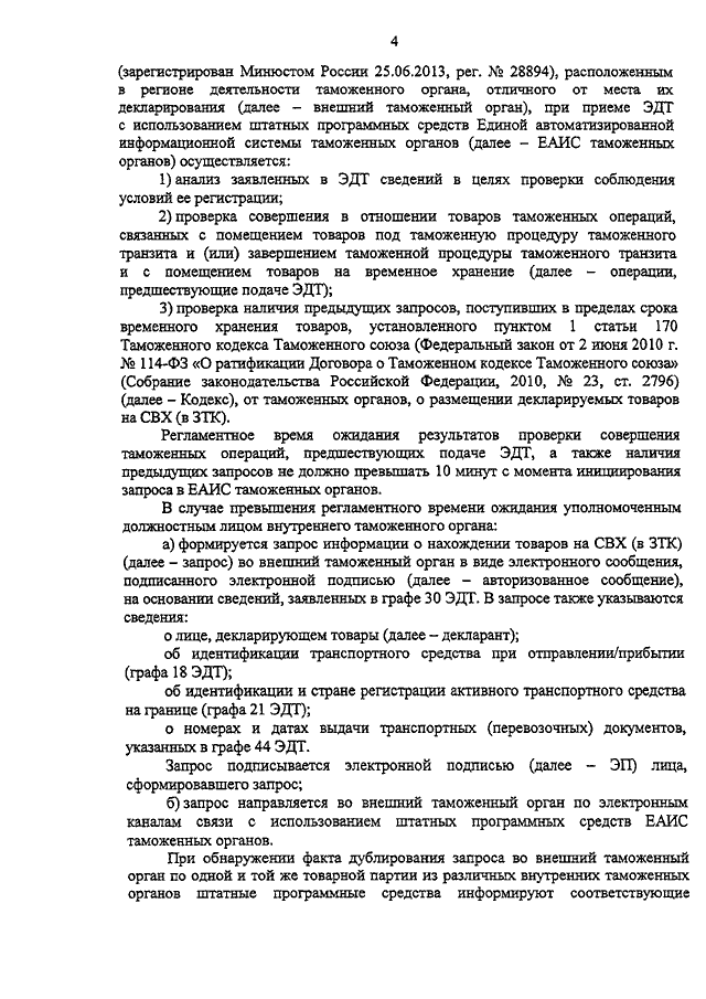 "ОБ УТВЕРЖДЕНИИ ИНСТРУКЦИИ О ДЕЙСТВИЯХ ДОЛЖНОСТНЫХ ЛИЦ ТАМОЖЕННЫХ ОРГАНОВ ПРИ СОВЕРШЕНИИ ТАМОЖЕННЫХ ОПЕРАЦИЙ ПРИ ТАМОЖЕННОМ ДЕКЛАРИРОВАНИИ В ЭЛЕКТРОННОЙ ФОРМЕ ТОВАРОВ, НАХОДЯЩИХСЯ В РЕГИОНЕ ДЕЯТЕЛЬНОСТИ ТАМОЖЕННОГО ОРГАНА, ОТЛИЧНОГО ОТ МЕСТА ИХ ДЕКЛАРИРОВАНИЯ"