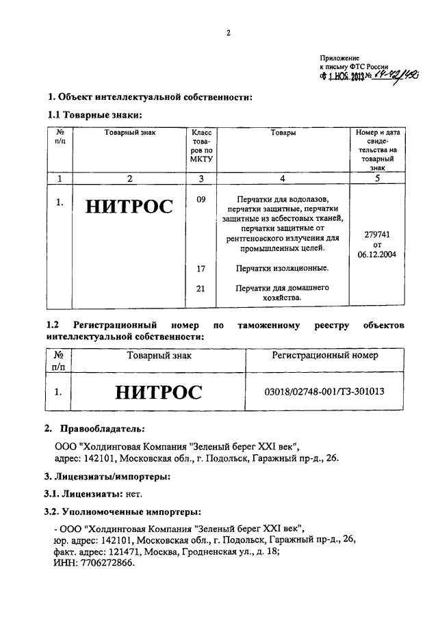 "О ТОВАРНОМ ЗНАКЕ "НИТРОС"