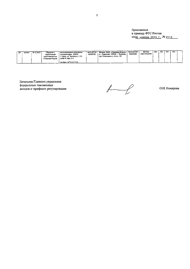 "О ВНЕСЕНИИ ИЗМЕНЕНИЙ В РЕЕСТР ТАМОЖЕННЫХ ПРЕДСТАВИТЕЛЕЙ В ОТНОШЕНИИ ОБЩЕСТВА С ОГРАНИЧЕННОЙ ОТВЕТСТВЕННОСТЬЮ "ТЕРМИНАЛ-КУРСК"