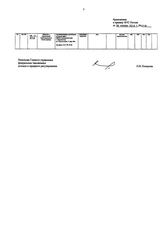 ПРИКАЗ ФТС РФ от 08.11.2013 N 2118