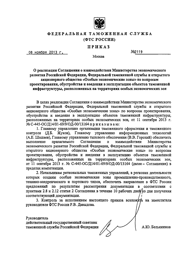 ПРИКАЗ ФТС РФ от 08.11.2013 N 2119