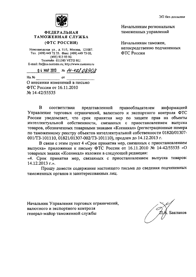 ПИСЬМО ФТС РФ от 04.03.2013 N 14-42/08908