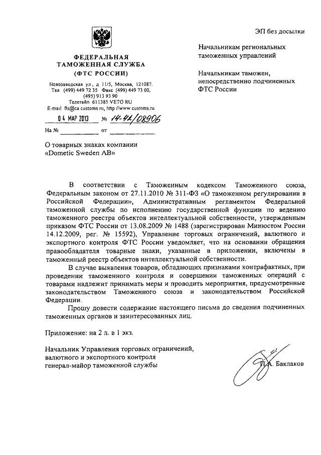 ПИСЬМО ФТС РФ от 04.03.2013 N 14-42/08906