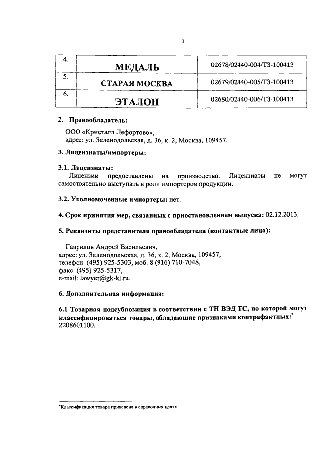 "О ТОВАРНЫХ ЗНАКАХ ООО "КРИСТАЛЛ ЛЕФОРТОВО"