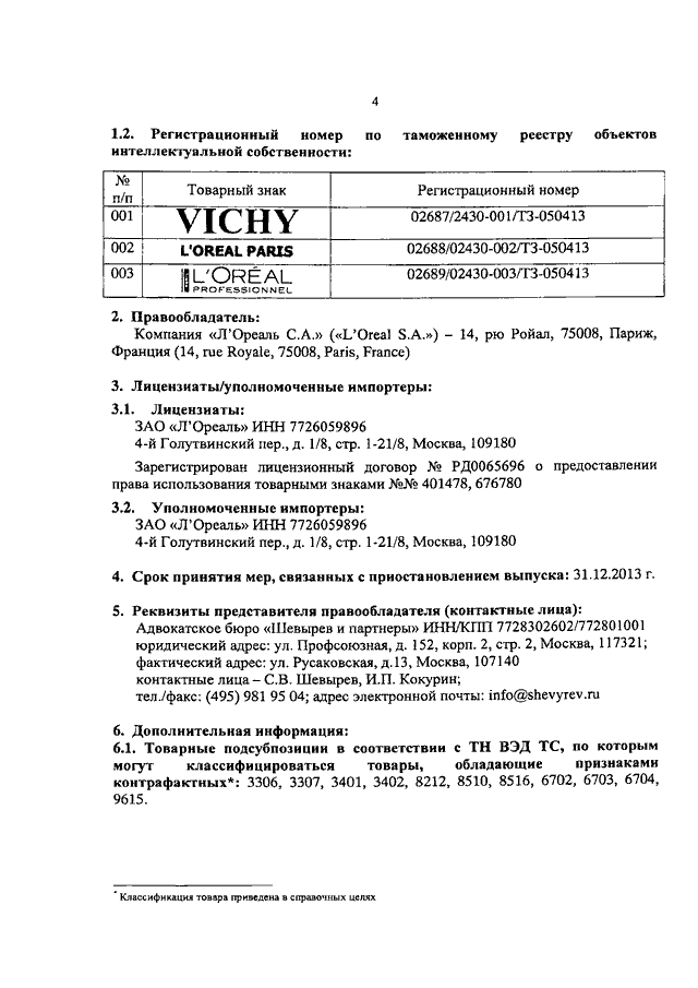 "О ТОВАРНЫХ ЗНАКАХ КОМПАНИИ "Л'ОРЕАЛЬ С.А."
