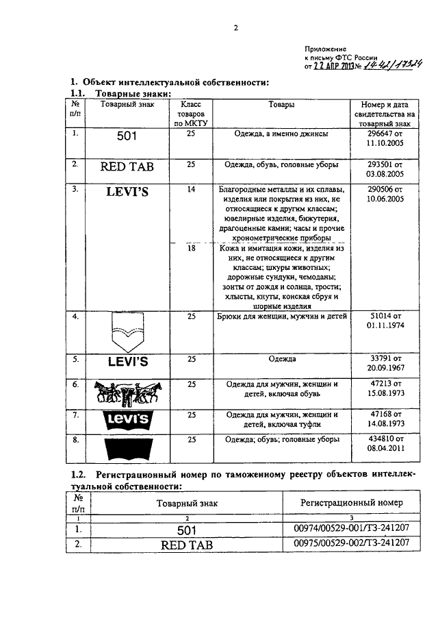 ПИСЬМО ФТС РФ от 22.04.2013 N 14-42/17324