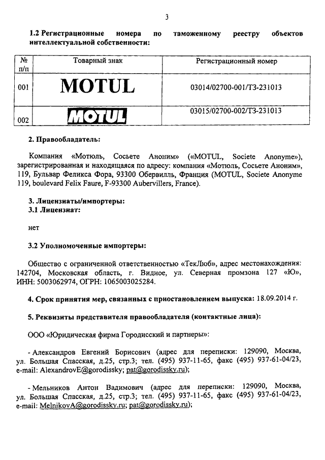 "О ТОВАРНЫХ ЗНАКАХ КОМПАНИИ "MOTUL, SOCIETE ANONYME"