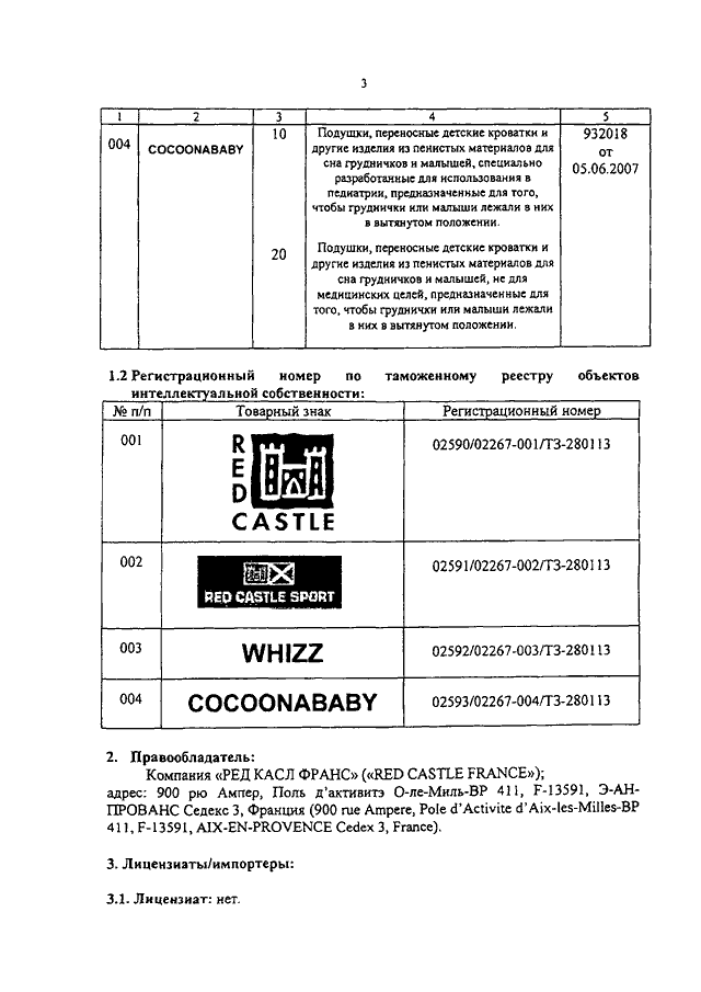 "О ТОВАРНЫХ ЗНАКАХ КОМПАНИИ "RED CASTLE FRANCE"