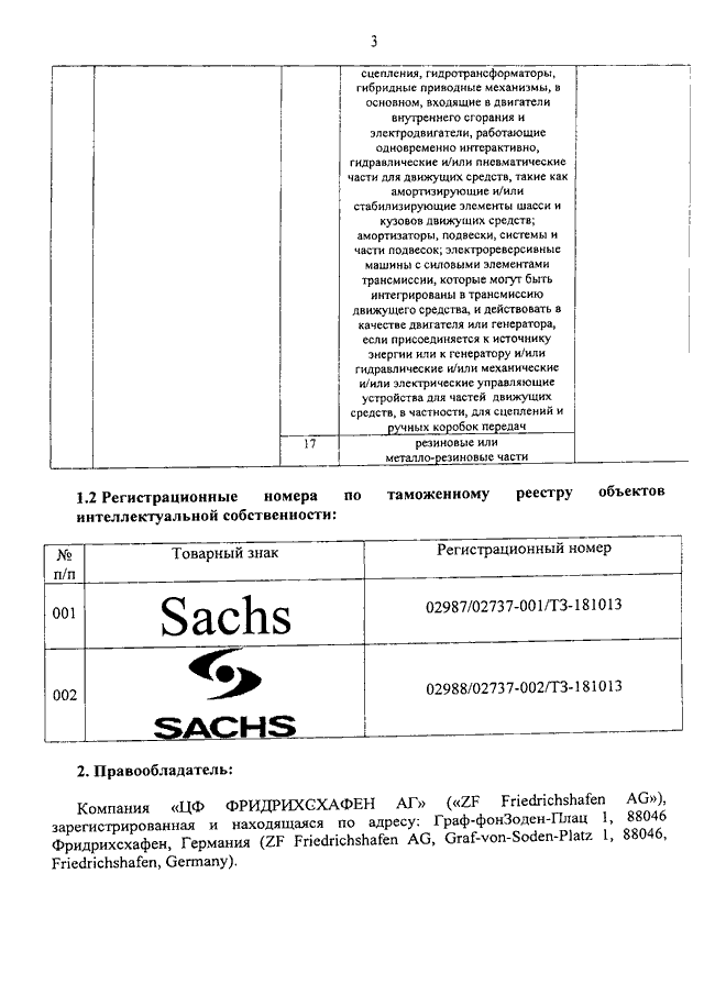 "О ТОВАРНЫХ ЗНАКАХ КОМПАНИИ "ZF FRIEDRICHSHAFEN AG"