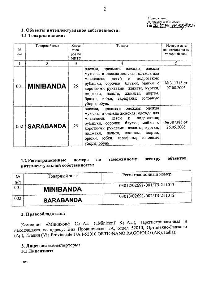"О ТОВАРНЫХ ЗНАКАХ КОМПАНИИ "MINICONF S.P.A."