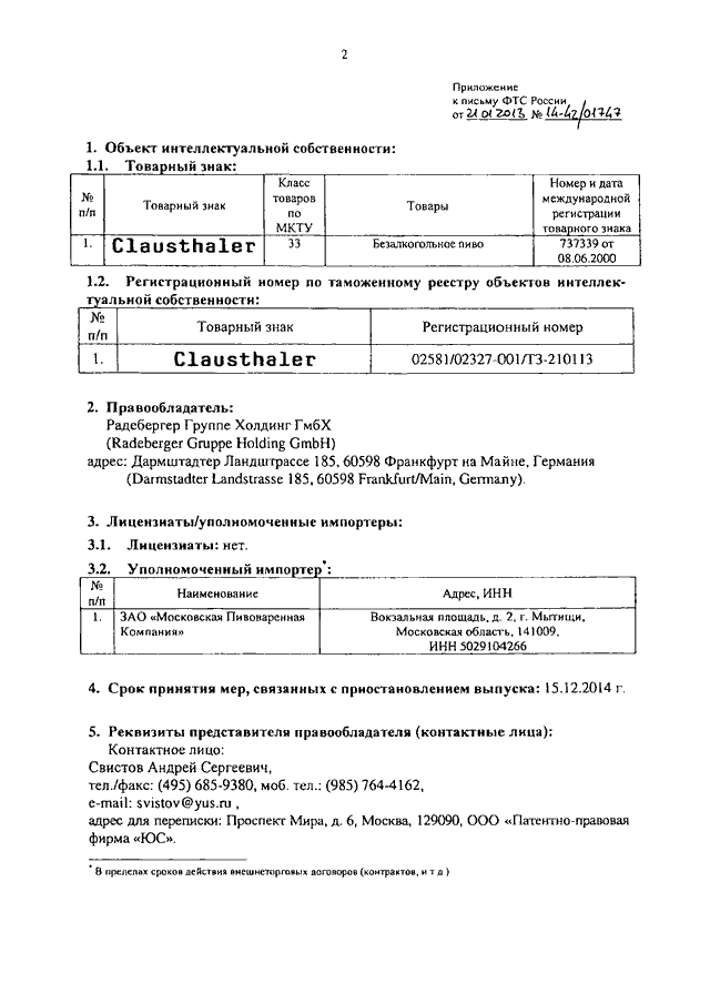 "О ТОВАРНОМ ЗНАКЕ "CLAUSTHALER"