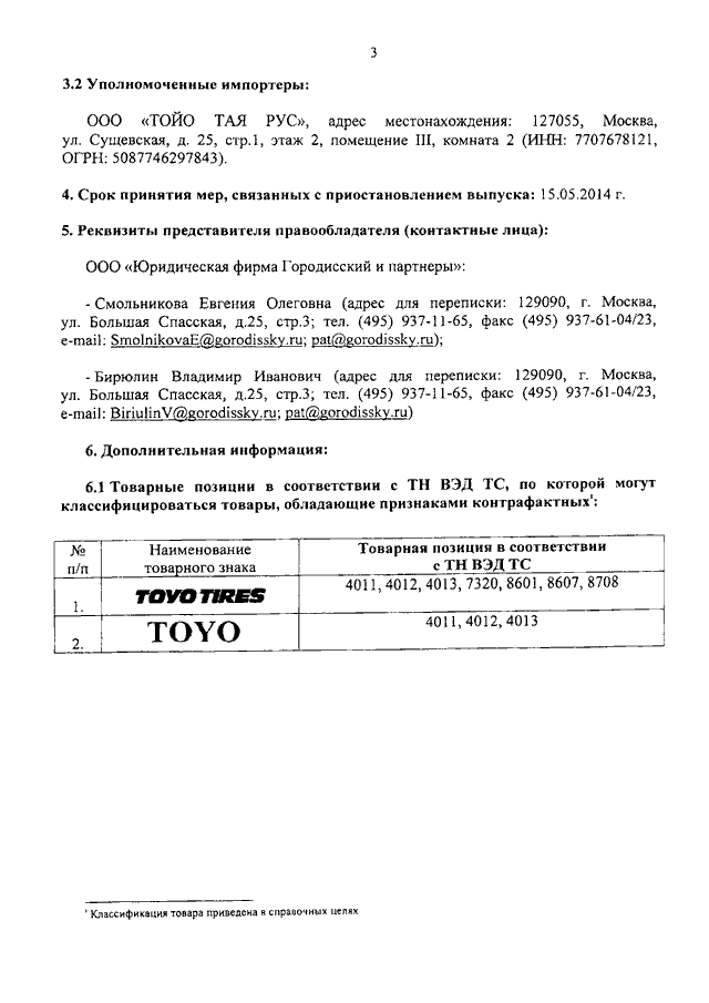 "О ТОВАРНЫХ ЗНАКАХ КОМПАНИИ "TOYO TIRE & RUBBER CO., LTD"