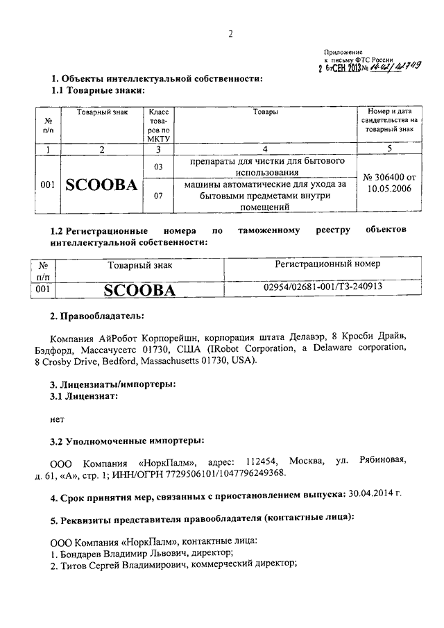 "О ТОВАРНОМ ЗНАКЕ "SCOOBA" КОМПАНИИ "IROBOT CORPORATION"
