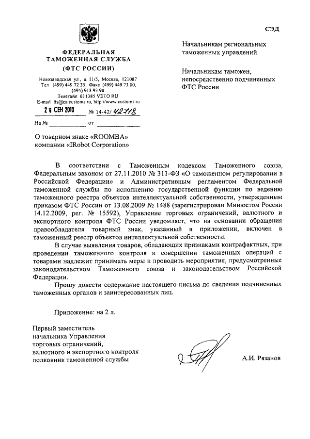 ПИСЬМО ФТС РФ от 26.09.2013 N 14-42/42718