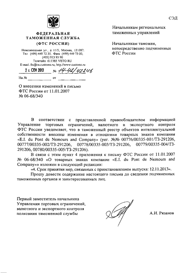 ПИСЬМО ФТС РФ от 24.09.2013 N 14-42/42246