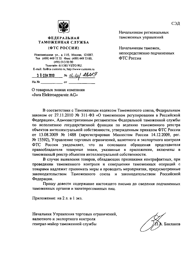 ПИСЬМО ФТС РФ от 30.09.2013 N 14-42/43229