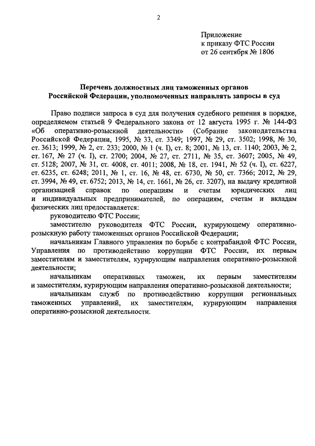 "ОБ УТВЕРЖДЕНИИ ПЕРЕЧНЯ ДОЛЖНОСТНЫХ ЛИЦ ТАМОЖЕННЫХ ОРГАНОВ РОССИЙСКОЙ ФЕДЕРАЦИИ, УПОЛНОМОЧЕННЫХ НАПРАВЛЯТЬ ЗАПРОСЫ В СУД"