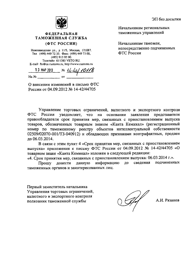 ПИСЬМО ФТС РФ от 13.03.2013 N 14-42/10118