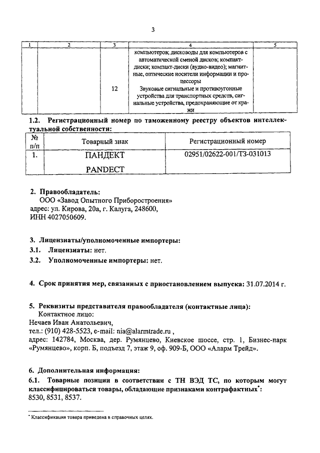"О ТОВАРНОМ ЗНАКЕ "ПАНДЕКТ PANDECT"