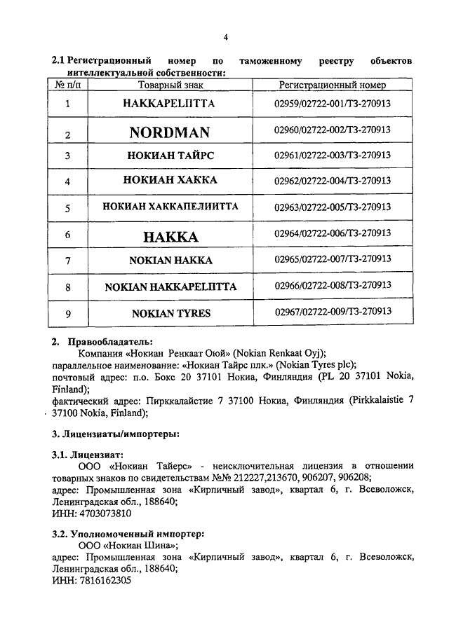 "О ТОВАРНЫХ ЗНАКАХ КОМПАНИИ "NOKIAN RENKAAT OYJ"