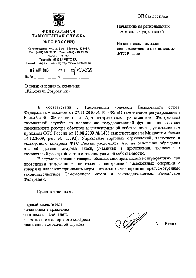 ПИСЬМО ФТС РФ от 02.04.2013 N 14-42/13752