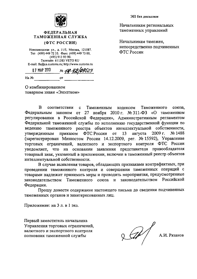 ПИСЬМО ФТС РФ от 07.03.2013 N 14-42/09527