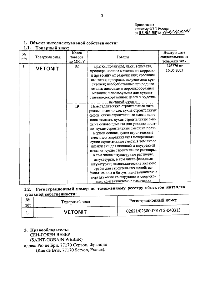 "О ТОВАРНОМ ЗНАКЕ "VETONIT"