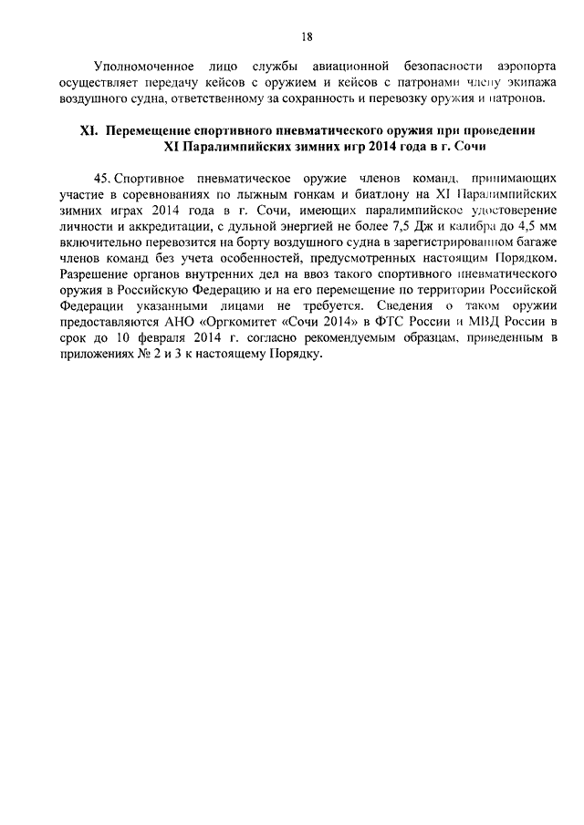 "ОБ УТВЕРЖДЕНИИ ПОРЯДКА ОФОРМЛЕНИЯ В АЭРОПОРТАХ СПОРТИВНОГО ОРУЖИЯ И ПАТРОНОВ К НЕМУ, ПРИНАДЛЕЖАЩИХ АККРЕДИТОВАННЫМ ЛИЦАМ, ДОСТАВКИ СПОРТИВНОГО ОРУЖИЯ И ПАТРОНОВ К НЕМУ ДО КОМПЛЕКСА ДЛЯ СОРЕВНОВАНИЙ ПО ЛЫЖНЫМ ГОНКАМ И БИАТЛОНУ "ЛАУРА" ПРИ ПРОВЕДЕНИИ XXII ОЛИМПИЙСКИХ ЗИМНИХ ИГР И XI ПАРАЛИМПИЙСКИХ ЗИМНИХ ИГР 2014 ГОДА В Г. СОЧИ"