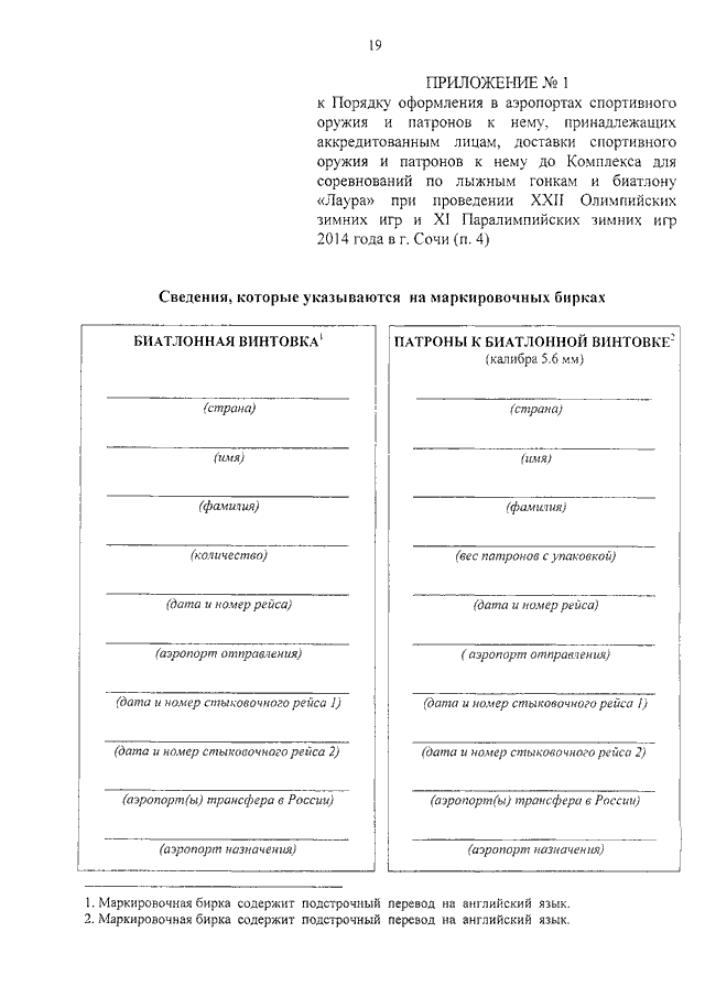 "ОБ УТВЕРЖДЕНИИ ПОРЯДКА ОФОРМЛЕНИЯ В АЭРОПОРТАХ СПОРТИВНОГО ОРУЖИЯ И ПАТРОНОВ К НЕМУ, ПРИНАДЛЕЖАЩИХ АККРЕДИТОВАННЫМ ЛИЦАМ, ДОСТАВКИ СПОРТИВНОГО ОРУЖИЯ И ПАТРОНОВ К НЕМУ ДО КОМПЛЕКСА ДЛЯ СОРЕВНОВАНИЙ ПО ЛЫЖНЫМ ГОНКАМ И БИАТЛОНУ "ЛАУРА" ПРИ ПРОВЕДЕНИИ XXII ОЛИМПИЙСКИХ ЗИМНИХ ИГР И XI ПАРАЛИМПИЙСКИХ ЗИМНИХ ИГР 2014 ГОДА В Г. СОЧИ"