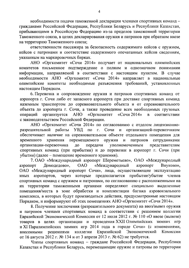 "ОБ УТВЕРЖДЕНИИ ПОРЯДКА ОФОРМЛЕНИЯ В АЭРОПОРТАХ СПОРТИВНОГО ОРУЖИЯ И ПАТРОНОВ К НЕМУ, ПРИНАДЛЕЖАЩИХ АККРЕДИТОВАННЫМ ЛИЦАМ, ДОСТАВКИ СПОРТИВНОГО ОРУЖИЯ И ПАТРОНОВ К НЕМУ ДО КОМПЛЕКСА ДЛЯ СОРЕВНОВАНИЙ ПО ЛЫЖНЫМ ГОНКАМ И БИАТЛОНУ "ЛАУРА" ПРИ ПРОВЕДЕНИИ XXII ОЛИМПИЙСКИХ ЗИМНИХ ИГР И XI ПАРАЛИМПИЙСКИХ ЗИМНИХ ИГР 2014 ГОДА В Г. СОЧИ"