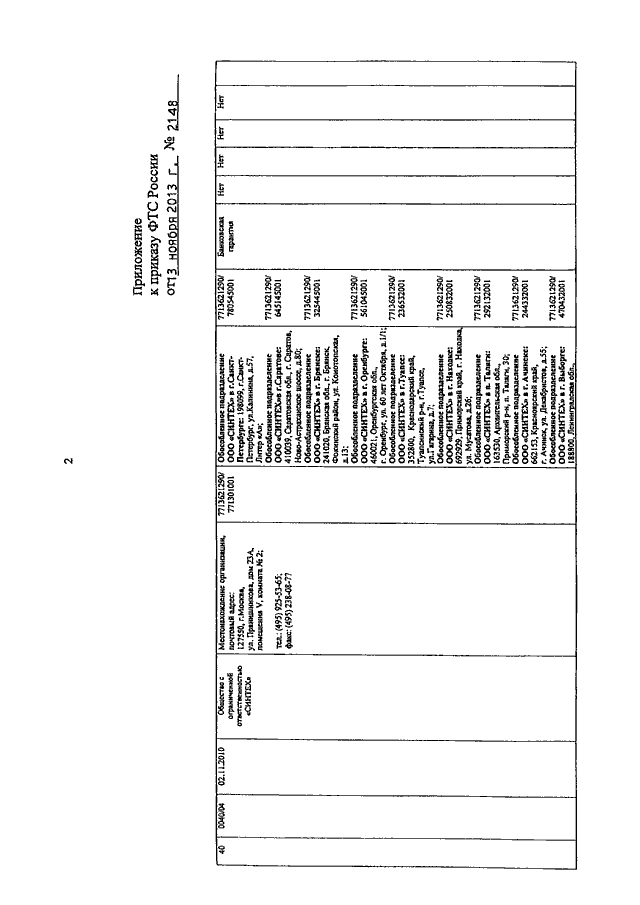 ПРИКАЗ ФТС РФ от 13.11.2013 N 2148