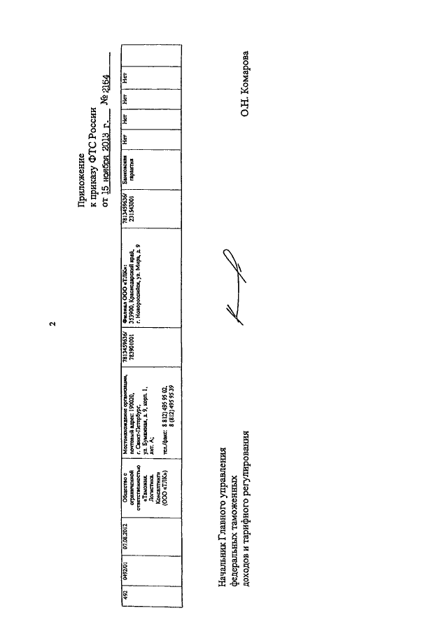 ПРИКАЗ ФТС РФ от 15.11.2013 N 2164