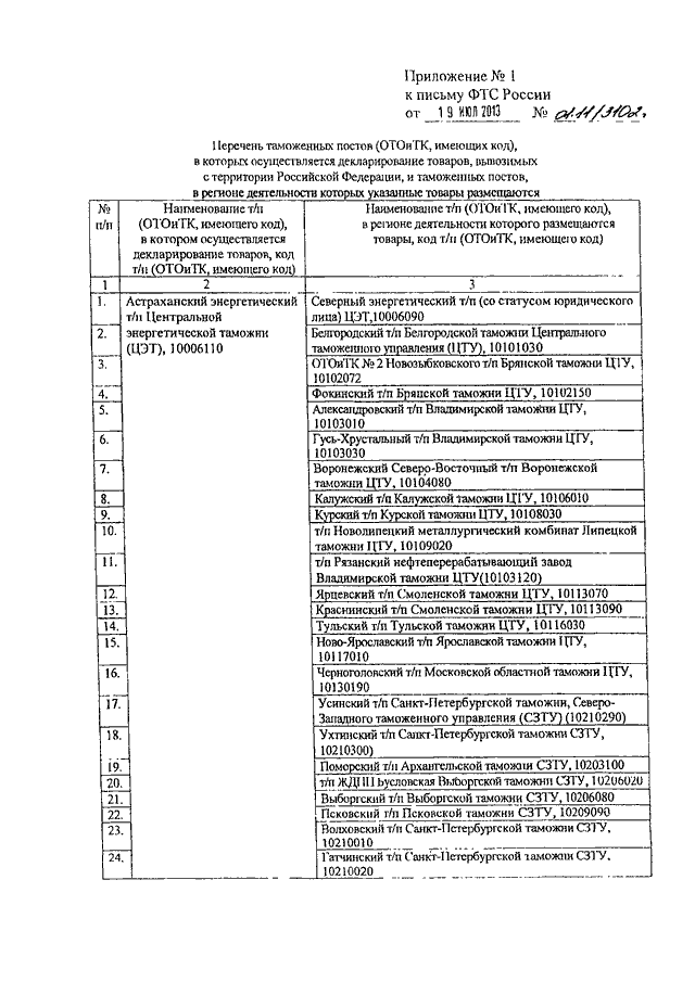 ПИСЬМО ФТС РФ от 19.07.2013 N 01-11/31027