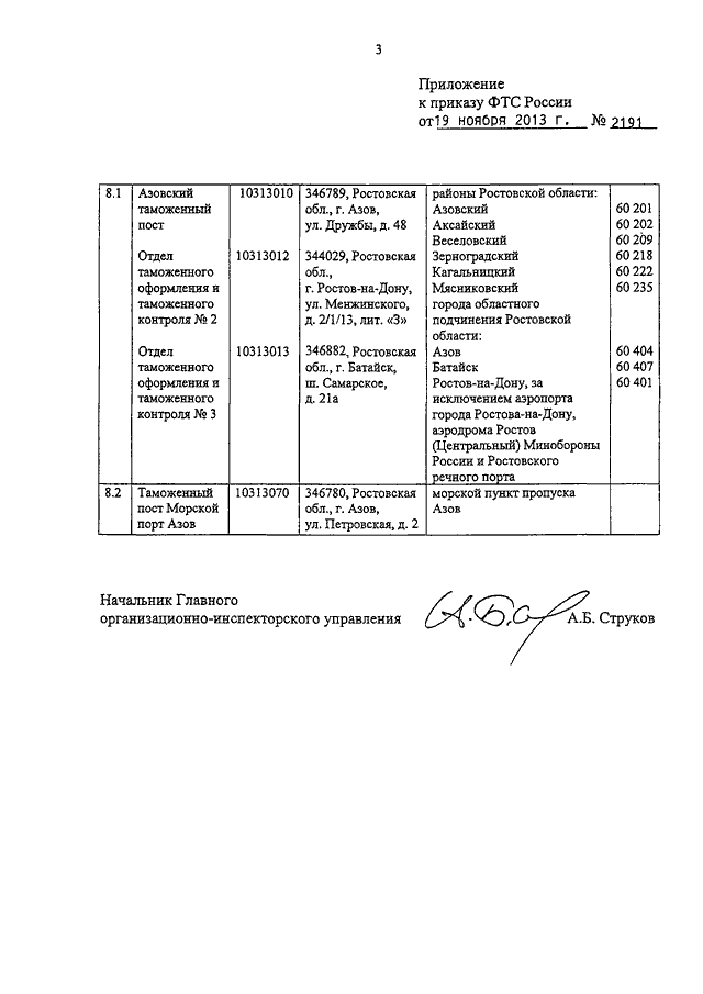 "ОБ АЗОВСКОМ И БАТАЙСКОМ ТАМОЖЕННЫХ ПОСТАХ РОСТОВСКОЙ ТАМОЖНИ"