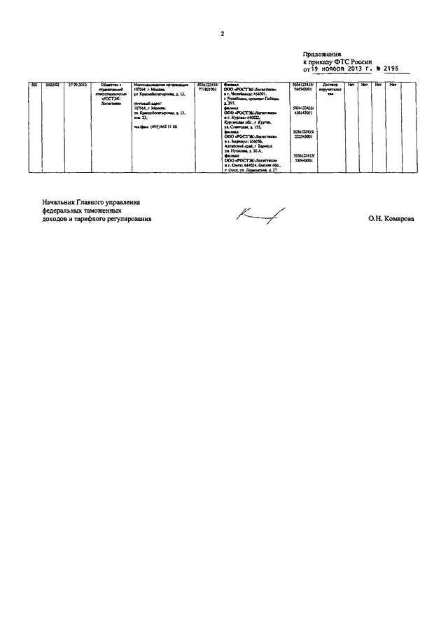 ПРИКАЗ ФТС РФ от 19.11.2013 N 2195