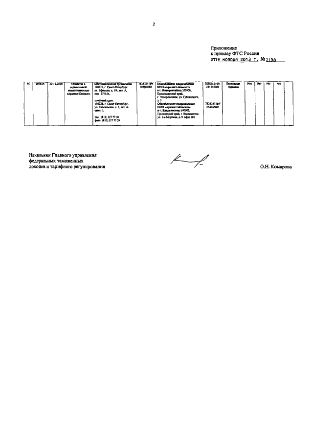 ПРИКАЗ ФТС РФ от 19.11.2013 N 2198