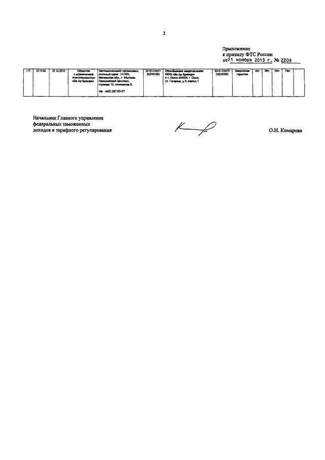 ПРИКАЗ ФТС РФ от 21.11.2013 N 2209
