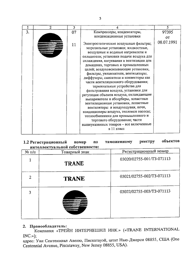 "О ТОВАРНЫХ ЗНАКАХ КОМПАНИИ "TRANE INTERNATIONAL INC."