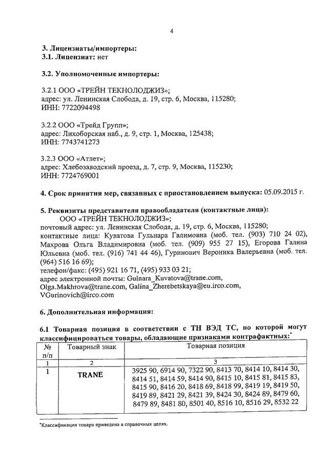 "О ТОВАРНЫХ ЗНАКАХ КОМПАНИИ "TRANE INTERNATIONAL INC."