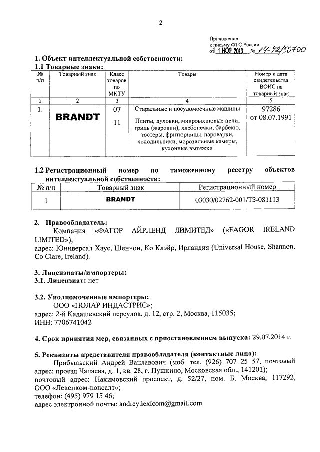 "О ТОВАРНОМ ЗНАКЕ "BRANDT"