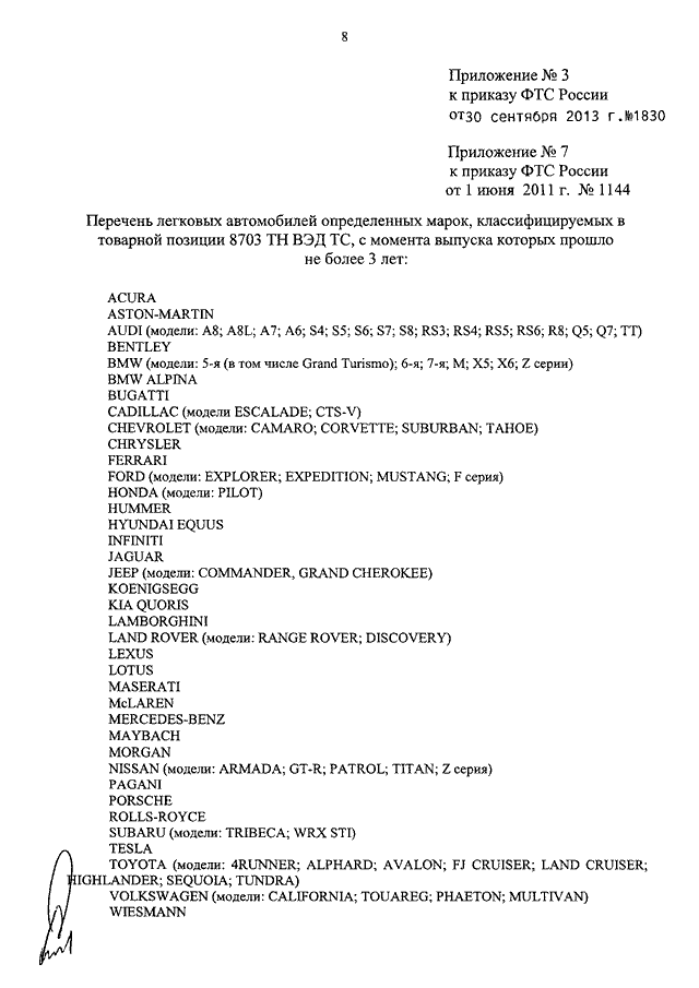 "О ВНЕСЕНИИ ИЗМЕНЕНИЙ В ПРИКАЗ ФТС РОССИИ ОТ 1 ИЮНЯ 2011 Г. N 1144"