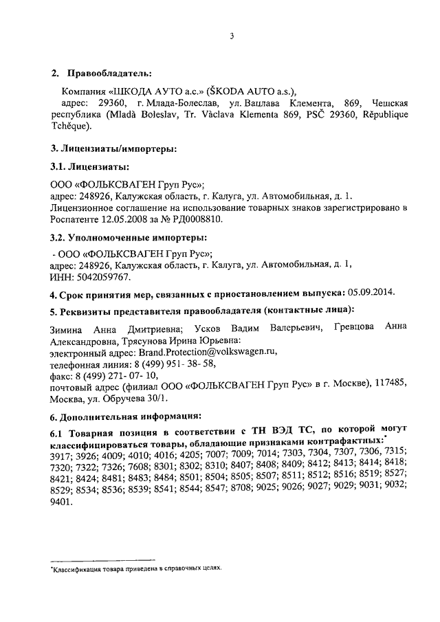 "О ТОВАРНЫХ ЗНАКАХ КОМПАНИИ "ШКОДА АУТО А.С."