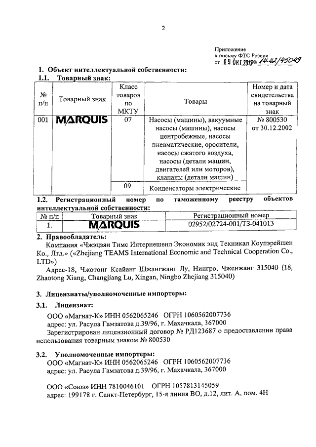 "О ТОВАРНОМ ЗНАКЕ "MARQUIS"
