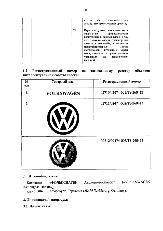 "О ТОВАРНЫХ ЗНАКАХ КОМПАНИИ "ФОЛЬКСВАГЕН АГ"