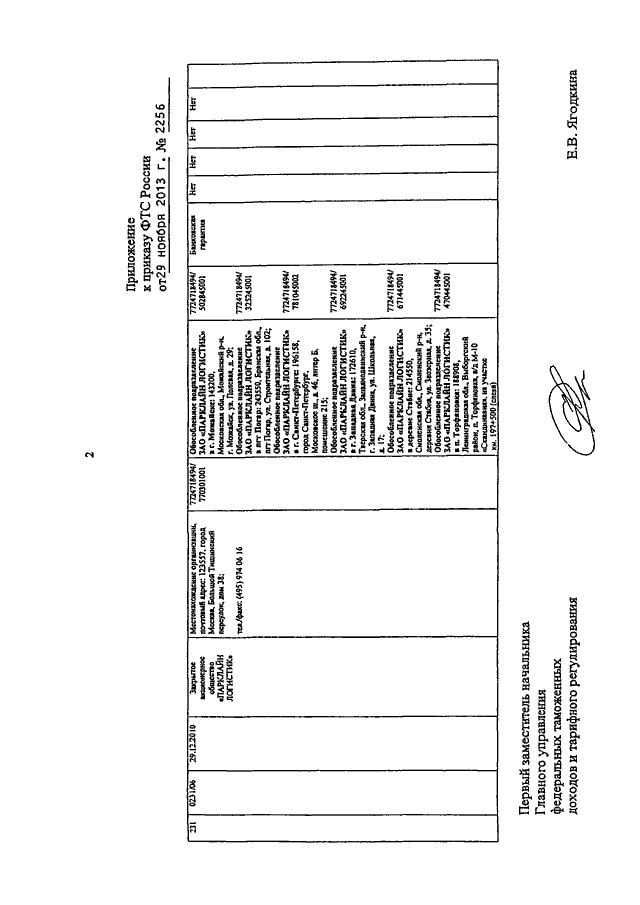 ПРИКАЗ ФТС РФ от 29.11.2013 N 2256