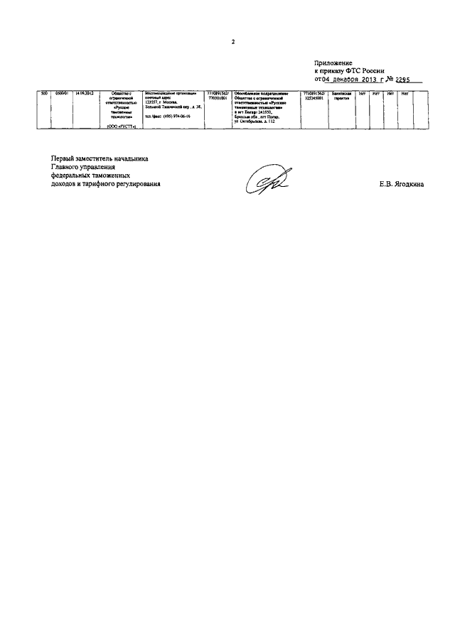 ПРИКАЗ ФТС РФ от 04.12.2013 N 2295